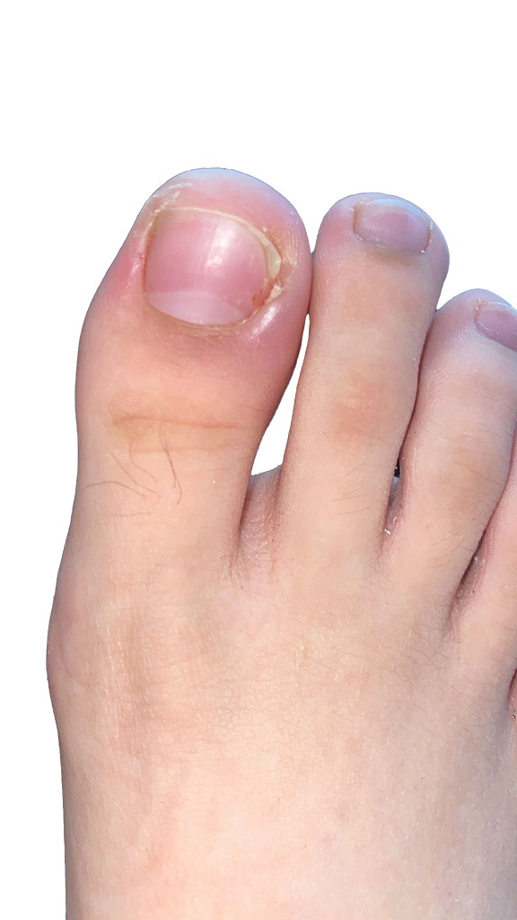 An ingrown toenail is a mechanical problem. The nail edge, typically the corner of the big toenail, has grown or been cut in a way that causes it to press into the adjacent nail fold rather than sitting cleanly above it. The nail is not infected. It is physically breaching soft tissue that is not designed to bear a sharp edge.